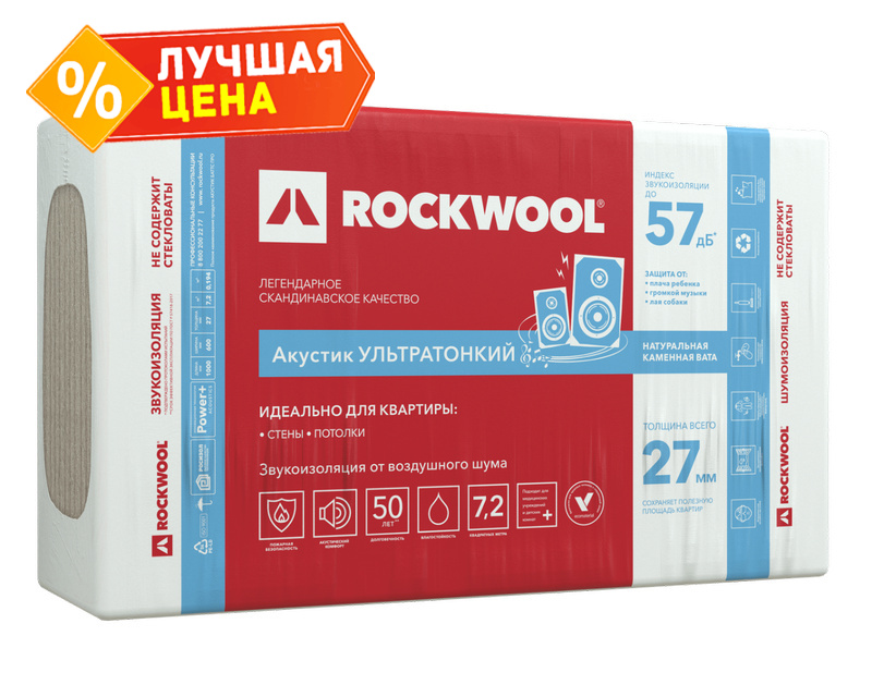 Устали слушать семейные ссоры экспрессивных соседей, громкий лай их собаки и шумные игры детей? Тишину и комфорт теперь легко приобрести! Плиты из каменной ваты ROCKWOOL Акустик УЛЬТРАТОНКИЙ – это звукопоглощающий материал для дополнительной звукоизоляции существующих стен и потолка, который удобно использовать в конструкции, возводимой в условиях ограниченного пространства, ведь его толщина всего 27 мм.